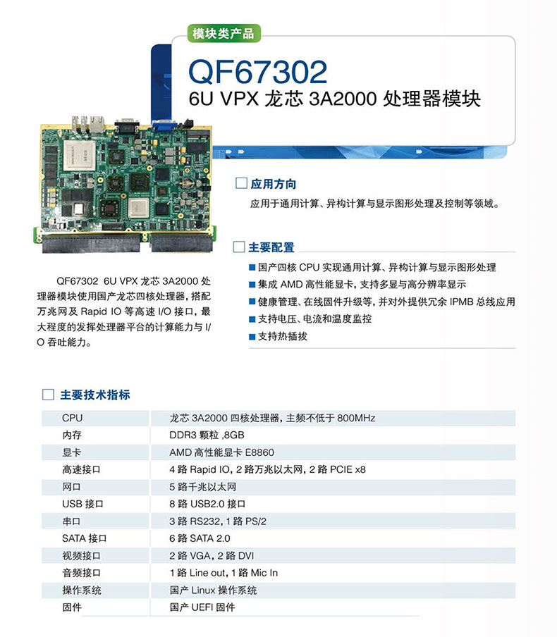 6U VPX 龙芯 3A2000 处理器模块