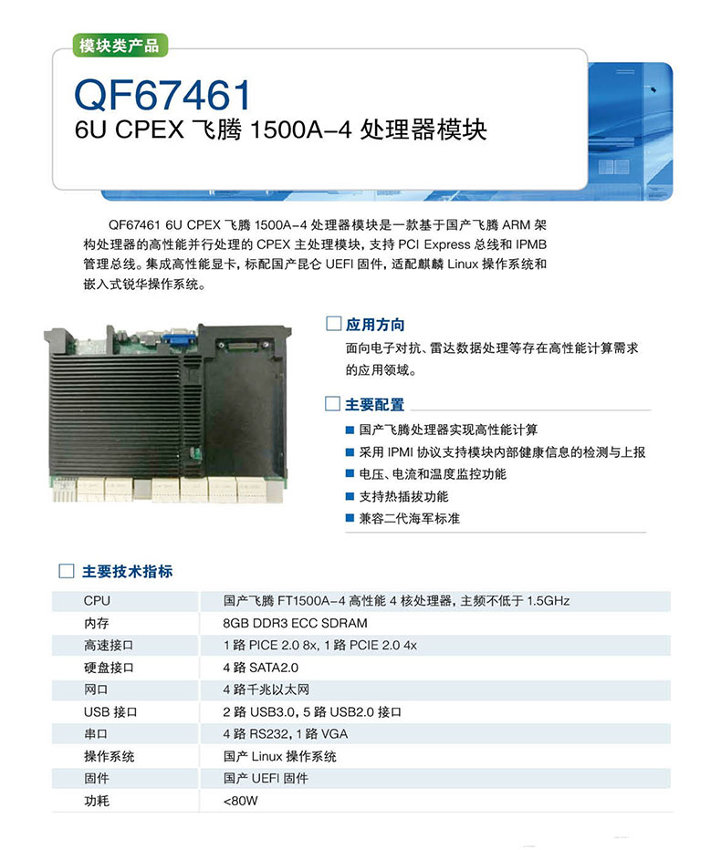 上一个:6U CPCI 飞腾 1500A 处理器模块