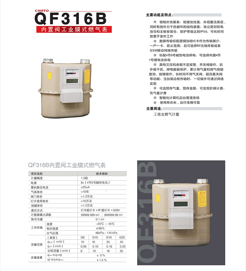 内置阀工业膜式燃气表