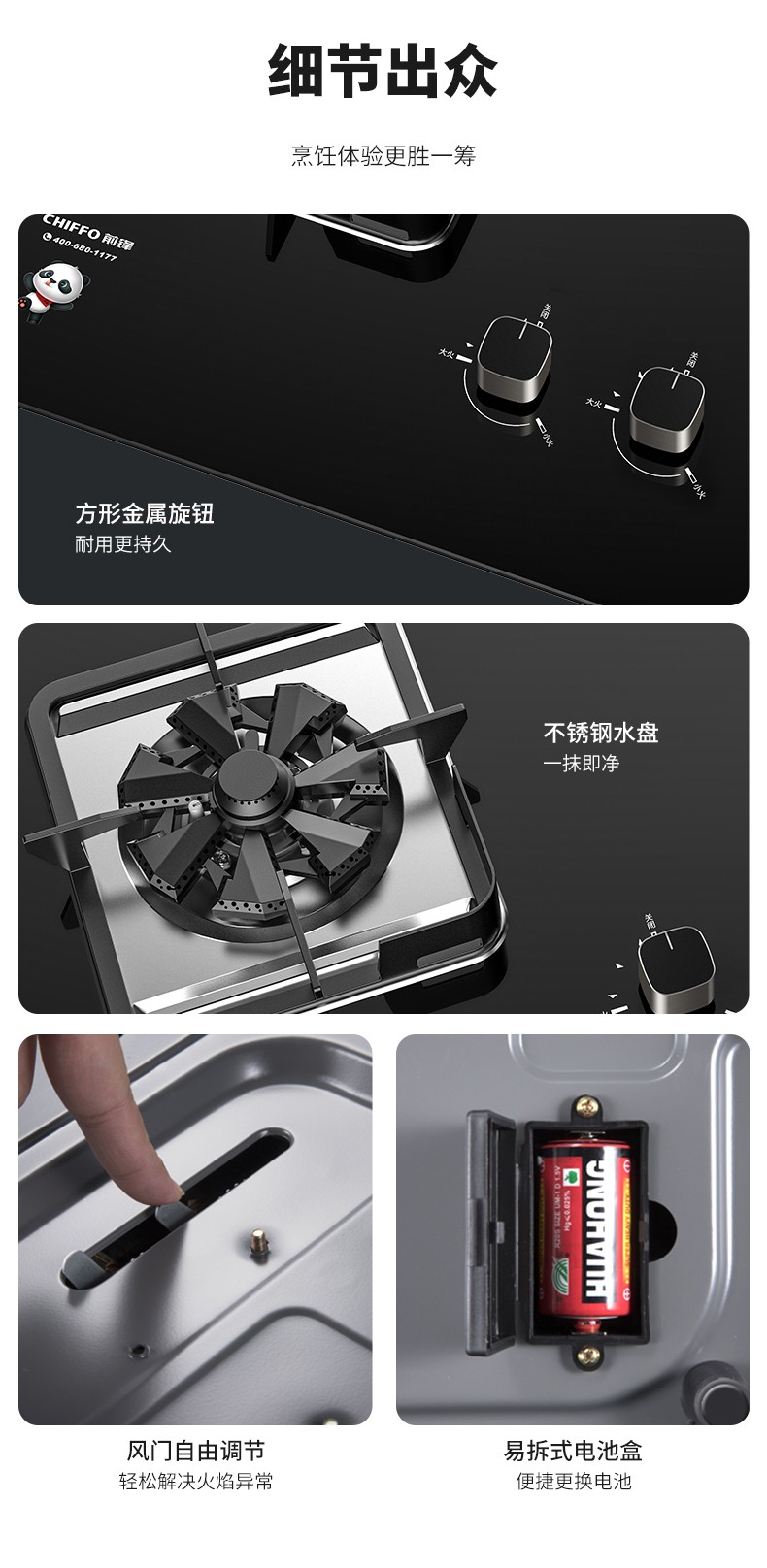 获得此次中国专利外观设计优秀奖的燃气灶,融入了前锋最新的科技创新设计,并搭载前锋专利“七旋火”,七通道分火器,旋转火燃烧,火力集中,热效率高;可变底壳设计,兼容更多家庭灶台尺寸,换灶无需重新开孔;搭配酷黑钢化玻璃面板,简约大气。整体外观设计采用流行的实用主义作为设计理念,将时尚、立体、协调等诸多元素结合;既保证用户良好的使用体验,又兼具有美学效果,深受广大用户的青睐。
